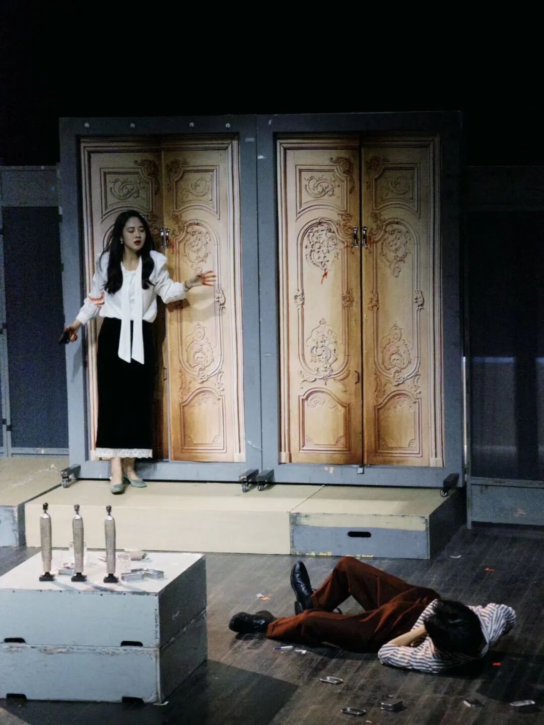 尤其值得一提的是,在期末考试中,同学们仅用了一天时间,从进入黑匣子剧场到最终合成,完成了一场直面观众的完整演出。这种高强度、高效率的舞台实践,不仅锻炼了大家的临场应变与团队协作能力,更让大家体会到“戏剧是现场的艺术”这句话的真正重量。