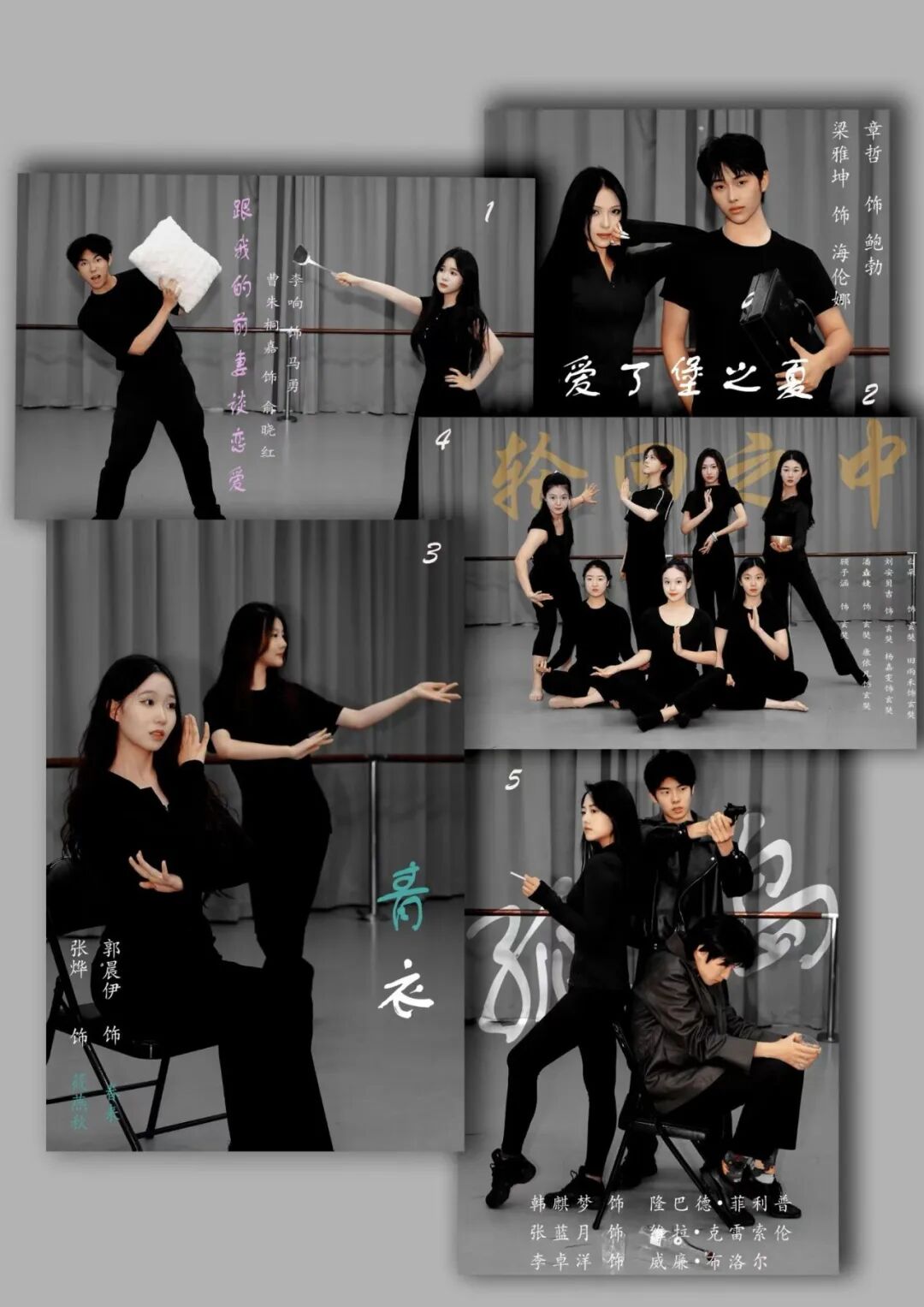 本学期表演课仅持续前八周,时间紧、任务重。在付雅雯老师的指导下,同学们在八周内,先后完成了六个不同风格的片段排练。这些片段均改编自经典话剧或影视作品,在题材与风格上呈现出丰富的多样性。从现实生活到古典神话,从经典电影改编到外国悬疑,大家在塑造性格化人物的训练中不断突破自我认知与表演惯性。